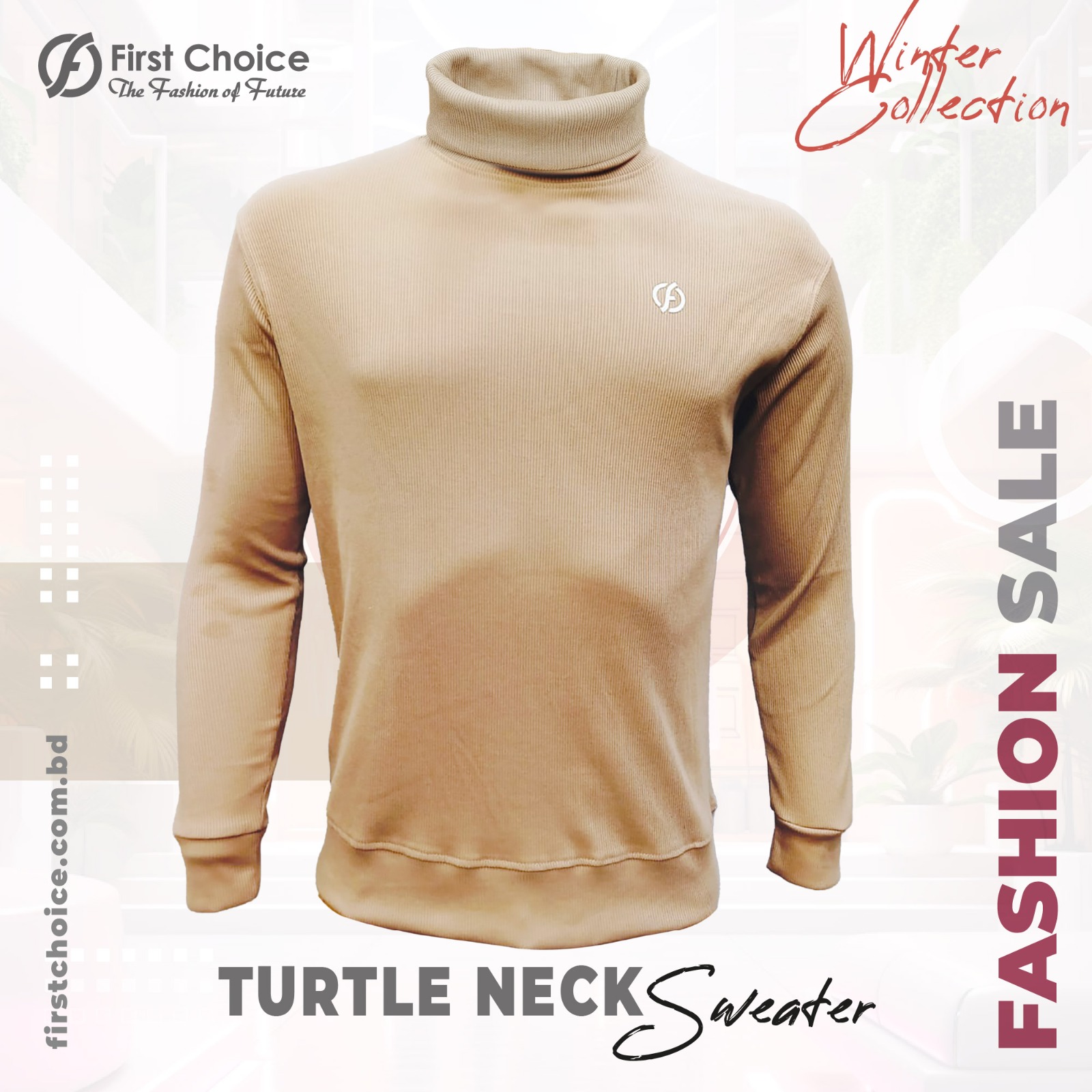 Turtle neck premium rib-fabrics sweater for Men-Khaki colour