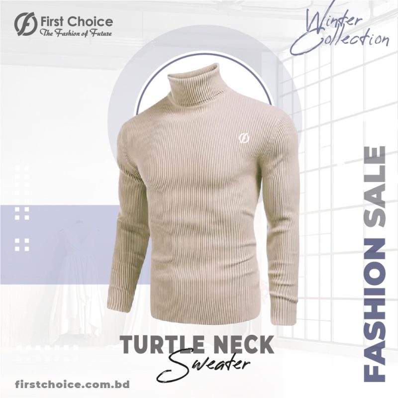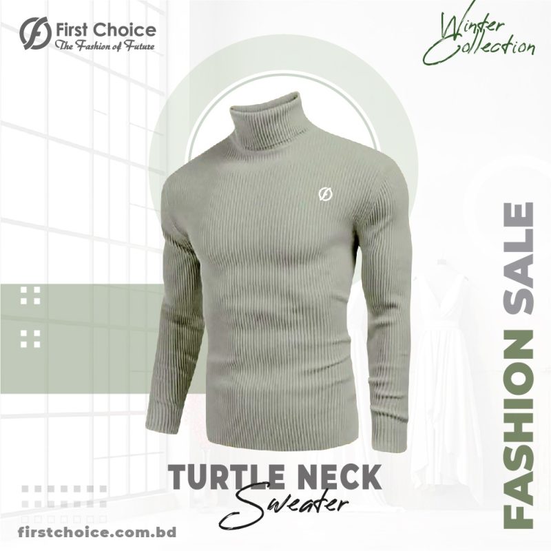 Turtle neck premium rib-fabrics sweater for Men-Ash Colour