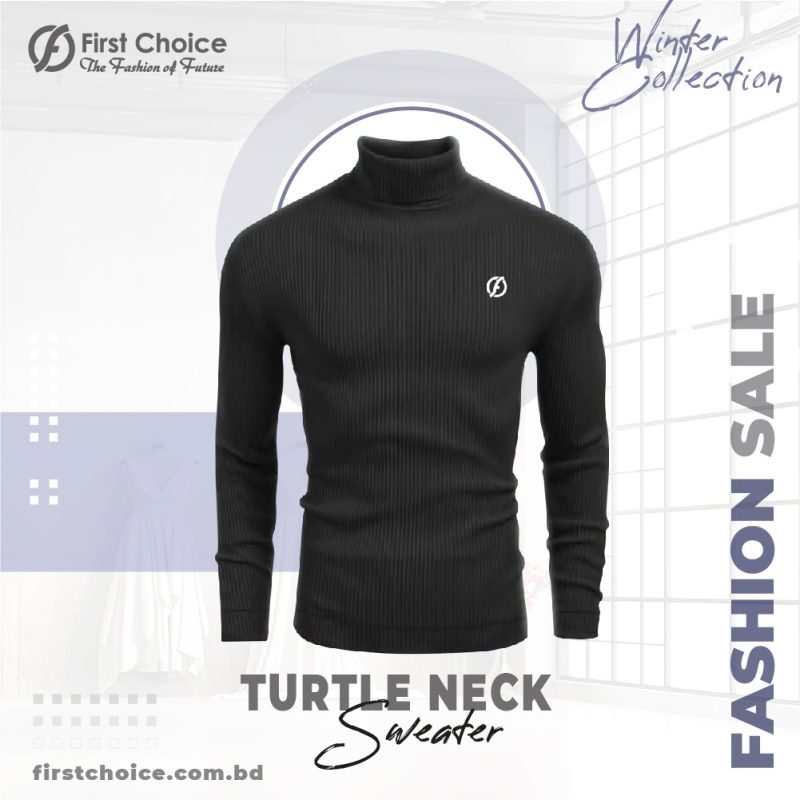 Turtle neck premium rib-fabrics sweater for Men-Black