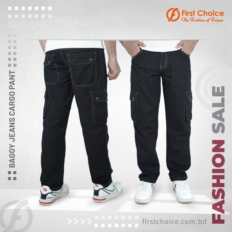 Men’s Baggy Jeans 6 pockets Cargo pant-Black