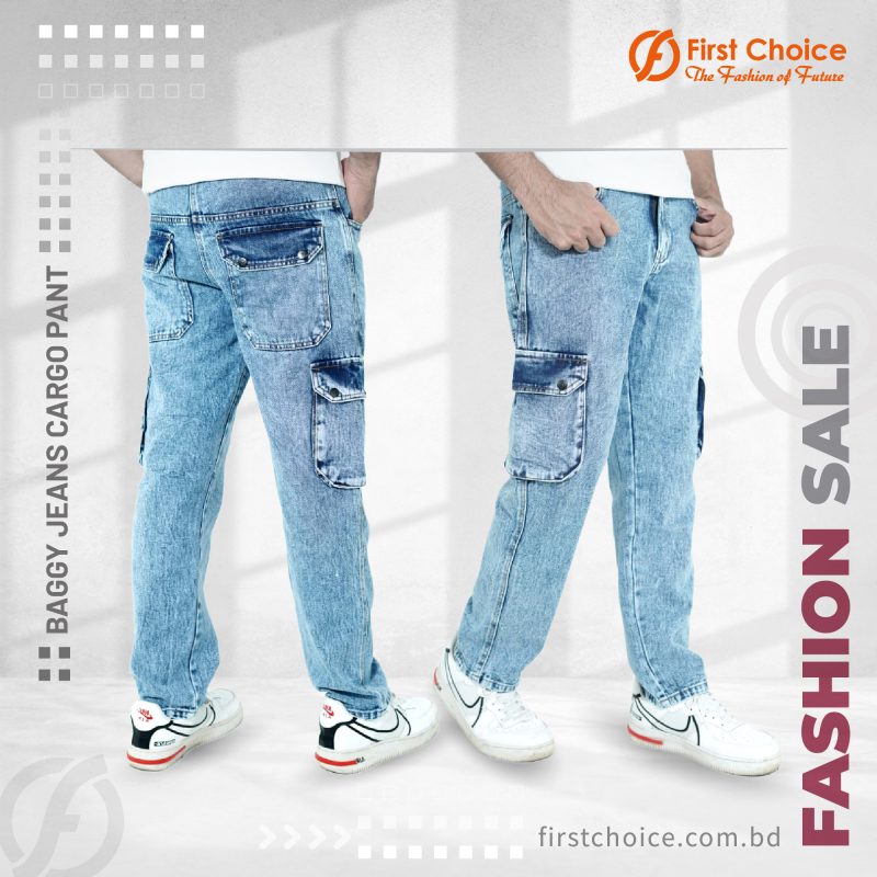 Men’s Baggy Jeans 6 pockets Cargo pant-Sky Blue