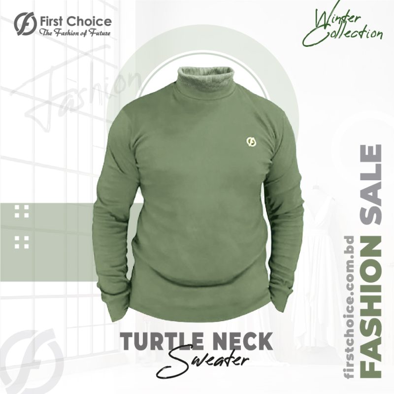 Turtle neck premium rib-fabrics sweater for Men-Olive Colour