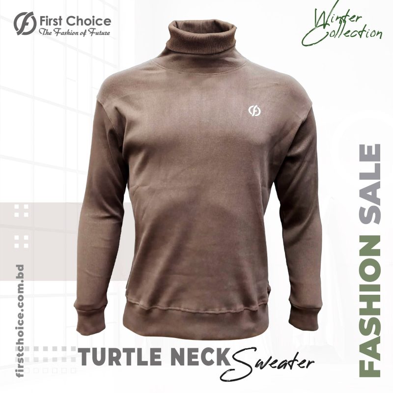 Turtle neck premium rib-fabrics sweater for Men-Coffee